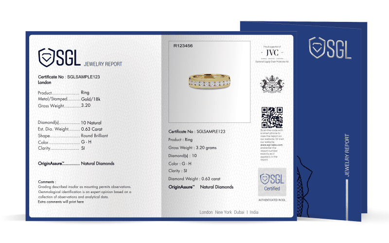 A diamond certification is a report that provides an accurate and detailed analysis of the diamond’s characteristics, including its cut, clarity, color, and carat weight. Organizations like SGL Labs use a rigorous grading system to evaluate the quality of diamonds and provide a detailed report about their characteristics. When buying an engagement ring, it’s important to ask your jeweler if the diamond has been certified by an organization like SGL Labs. A certified diamond gives you peace of mind knowing that you’re making a smart investment and buying a high-quality diamond.