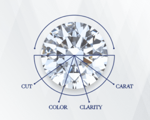 Cut – Cut is how well a diamond is cut, which affects how it interacts with light. A diamond’s brightness, sparkle, and flashes of color are determined by its cut.