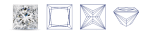 The modern princess cut diamond is the square version of a round brilliant cut, a.k.a square modified brilliant. It contains facets ranging from 53 to 144 (this may vary depending upon the shape of the square and cut of the pavilion). Also, it has sharp edges or delicate corners which make it more prone to chipping.