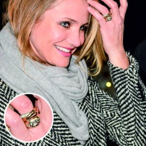 Cameron Diaz’s princess-cut solitaire engagement ring is the definition of beauty and style. It is set on a white gold band free from any accent diamonds.